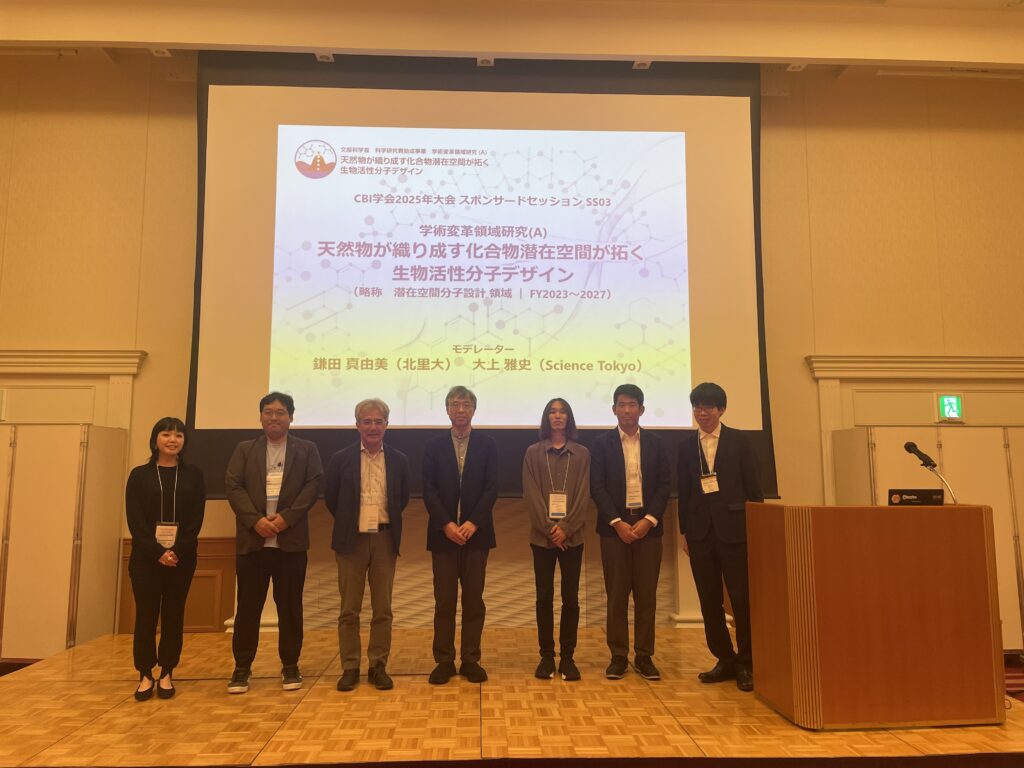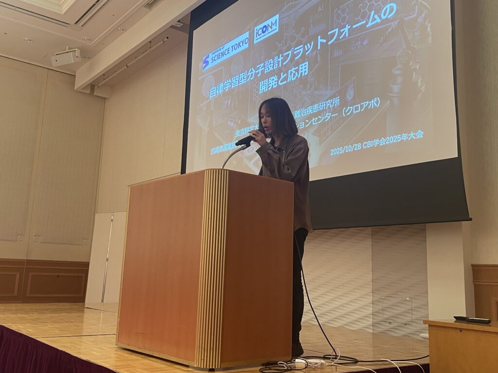 CBI学会は、化学(Chemistry)、生物学(Biology)、情報計算学(Informatics)という3つの学問分野に関わる先端的な研究開発の基盤構築をめざす学会で、製薬企業や創薬支援企業の参加者・出展が多いことも特徴です。本領域も親和性が高い学問分野の学会であり、4日間に渡って行われた2025年大会の中で本領域との共催セッションを開催させて頂きました。プログラムは本領域の情報解析班の研究成果を中心に構成しました。冒頭に、大上雅史先生より領域の概要とセッションの趣旨についてご説明いただき、続いて各登壇者による講演が行われました。